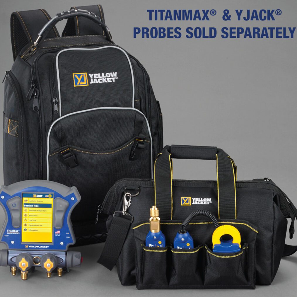 The YELLOW JACKET® YJACK® Tool Bag P/N 67090 and TITANMAX® Backpack P/N 40845 protect and organize your electronic service tools and more.