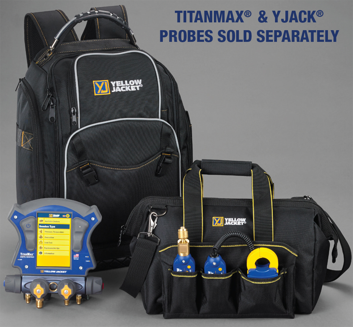 The YELLOW JACKET® YJACK® Tool Bag P/N 67090 and TITANMAX® Backpack P/N 40845 protect and organize your electronic service tools and more.